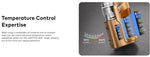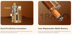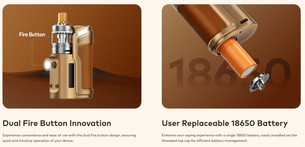 The Sidera DNA 60C runs on an 18650 battery and can deliver up to 60W of power. It can accommodate atomizers up to 24mm in diameter. There were three colors to choose from - black, steel and bronze. The back side is complemented with an ergonomic rounded frame with an artificial leather insert. A round fire button and a couple of small adjustment keys were placed on a small carved facade. In addition, the activation button was duplicated on the top of the battery cylinder. The laconic display was sent to the side. The opposite end was equipped with a USB port. A removable battery compartment cover was screwed to the bottom. The top of the cylinder was decorated with an engraved insert.