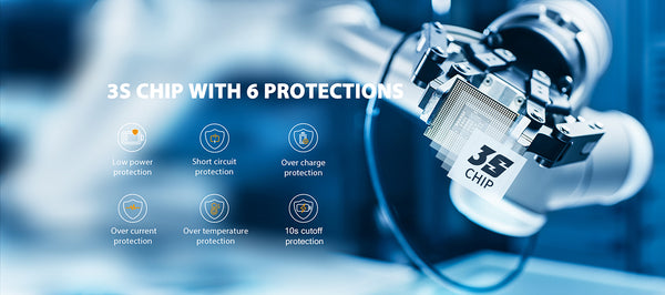 9. Multiple protections: Low power/Short-circuit/Overcharge/Over-current/Over-temperature/10s cut-off protection