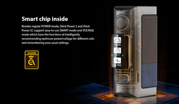 Eleaf iStick Power 2 is the next generation of iStick Power. Returning to the simplistic box shape of original iStick Power, iStick Power 2 features a stylish color block leather design, perfect combinations of fashion and comfort. You could feel the difference they bring and big vapor clouds without sacrificing the flavor. Eleaf iStick Power 2 is respectively powered by a gigantic internal 5000mAh battery to whole day vaping. They also develop and apply smart Avatar chip. Besides regular POWER mode, iStick Power 2 support easy-to-use SMART mode and VOLTAGE mode which have the functions of intelligently recommending optimum power/voltage for different coils and remembering your usual settings.