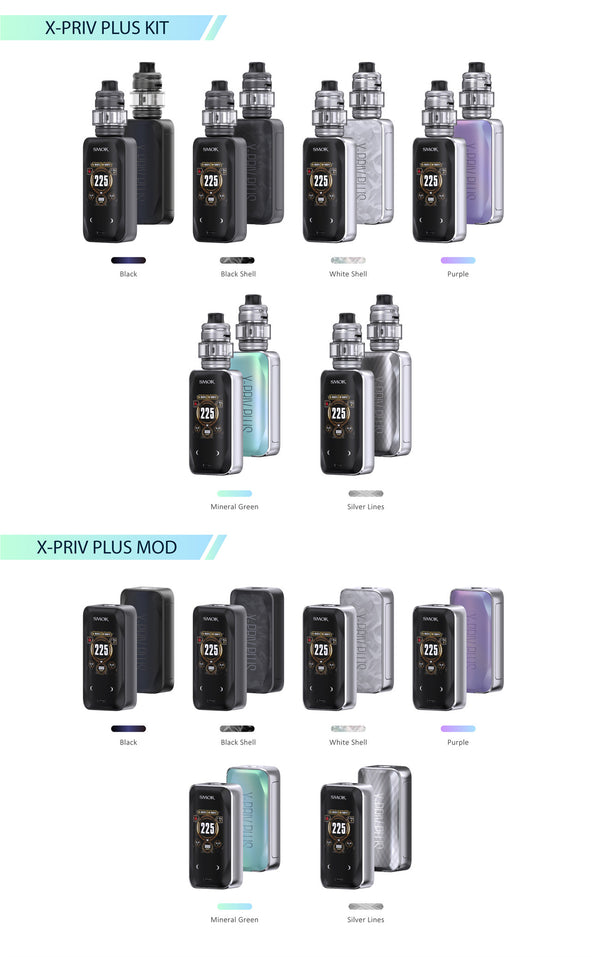 The SMOK X-PRIV Plus Box Mod is power by two external 18650 batteries (not included)and has a wider range of output power from 5W to 225W.Any subtle change in the...