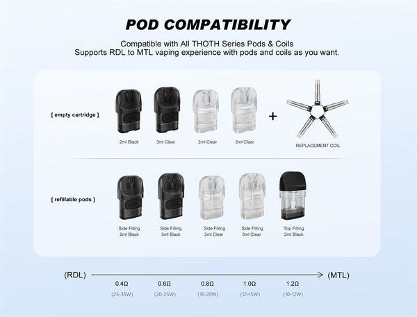 7. THOTH series pod cartridge & coils compatible