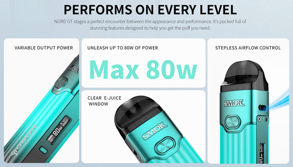 Smok Nord GT Kit is powered by a built-in 2500mAh battery with 80W max and Type-C charging. Equipped with stepless airflow control, it can deliver the airflow you need from...