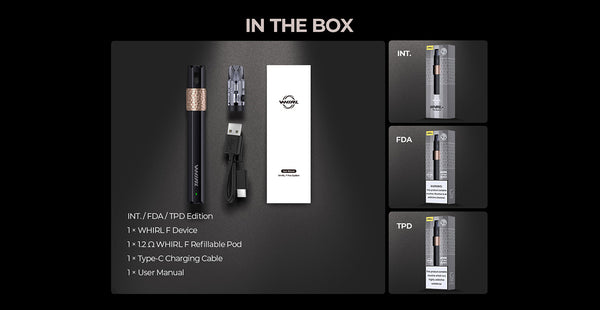 Uwell Whirl F Pod System comes with a powerful 450mAh rechargeable battery, 2ml vape juice capacity, side-filling design and a three-color indicator light for battery status. Sleek and portable, Whirl...