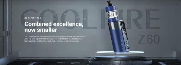 The Innokin Coolfire Z60 kit is a Mouth-To-Lung (MTL) and Restricted-Direct-To-Lung (RDL) device, powered by an internal 2500mAh capacity battery firing up to 60W. It’s essentially a variable wattage/variable voltage...