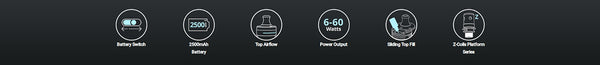 2. Compact design with 2500mAh battery, Up to 60W of variable power, all-day battery life