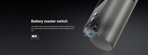 Incorporated into the mod is the Type-C USB charging port and a 0.96inch colored OLED display screen. A master switch is positioned on the base of the Coolfire Z60 mod to fully shut off the device instead of using the normal 3/5 clicks of the fire button.