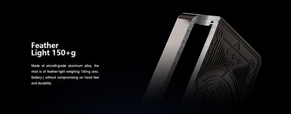 Made of aircraft-grade aluminum alloy , the mod is of feather-light weighing 150 + g ( exc Battery ) without compromising on hand feel and durability