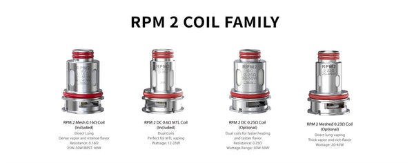 Coil Included:RPM 2 Mesh 0.16ohm Coil, RPM 2 DC 0.6ohm MTL Coil