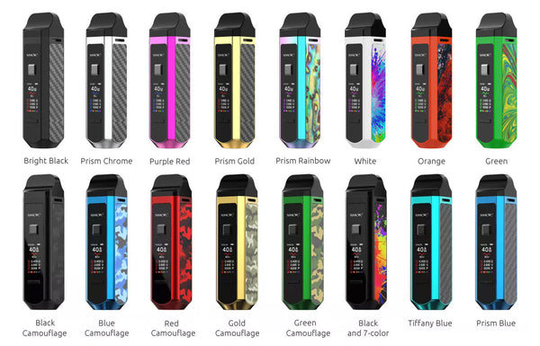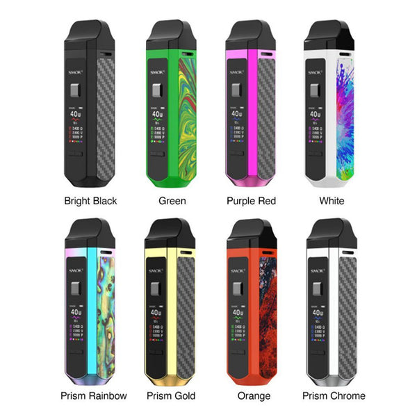 Smok RPM40 Pod Mod Kit is an ultra-portable pod mod that shapes like a cuboid and is covered with glossy finish and characteristic material, making the whole device look fancy and stylish. It is small in size but has a battery capacity of 1500mAh which can ensure enough running time and help you avoid frequent charging, and a power range of 1W-40W for you to adjust, and you can press the UP/DOWN button to get your preferred power. The internal IQ-R chip is a new one, shortening the firing time to 0.001S, and charging time to two hours. Different from normal tiny and slim pod devices, RPM40 is designed with a 0.96-inch screen, with which, detailed vaping data is clearly presented, like the wattage, resistance, voltage, screen color, puff number, and battery level. Besides, the newly designed RPM Mesh 0.4ohm Coil is designed for the best flavor and excellent vapor production. Innovation keeps changing the vaping experience!