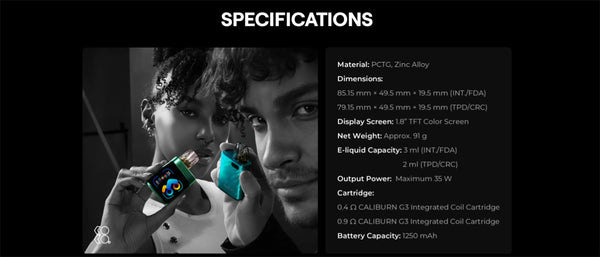 5. G Pod Platform(GPP) Compatibility: Compatible with all CALIBURN G3 cartridges that are versatile from freebase to nic salt