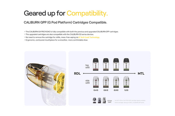 7. Upgraded GPP Cartridges – Compatible with both G4 Pro Koko and G3 series, 2.5ml top-fill pods with ergonomic mouthpiece.