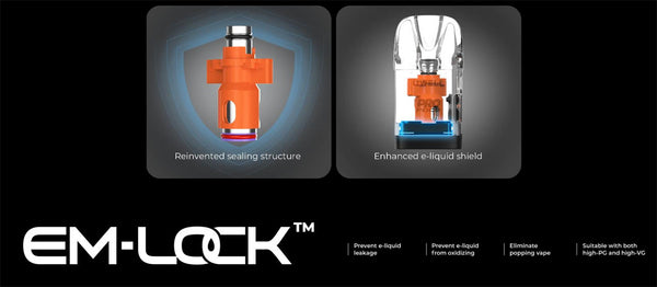 EM-LOCK™, an innovative vaping solution, features an enhanced e-liquid shield that encircles the coil. Activated by an electromagnet housed within the vape's body, it opens when you take a puff and seals tightly when you're not. This design effectively addresses the common issue of leakage in high-output atomizers caused by excessive e-liquid supply. Enjoy your ticket to mess-free, worry-free vaping.