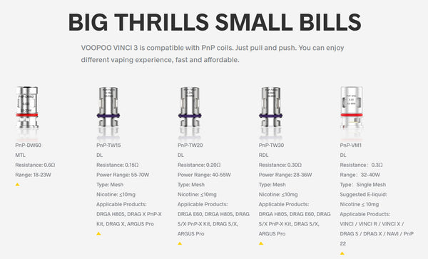 The Voopoo VINCI 3 Mod Pod System, offering an internal 1800mAh battery, 5-50W output range, and uses some new additions to the PnP Coils Series. Constructed from durable zinc-alloy, the chassis of the Vinci 3 Mod Pod is lightweight and slim, making it extremely portable. Fitting neatly within the bookbag, purse, or pocket, the Vinci 3 does not sacrifice in the performance department, packing an 1800mAh battery inside the small chassis. Holding up to 4mL within the refillable pod, the Vinci 3 calls upon the host of PnP coils to deliver flavorful MTL vaping or large clouds of flavored vapor via DTL vaping. Visually striking and with function to match, this is the next pod system that will make its way into your collection.